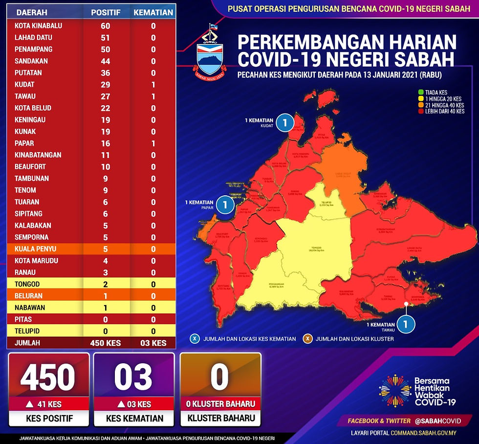 COVID-19: 450 NEW CASES IN SABAH, THREE DEATHS